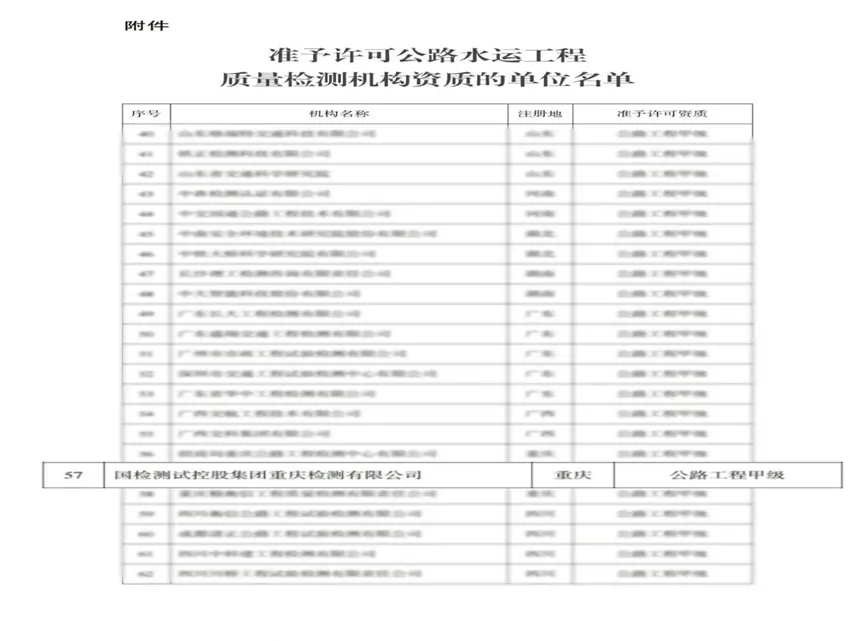 近日,经国家交通运输部核准,国检集团重庆公司获批公路工程甲级质量检测机构,标志着国检集团成功迈入公路工程检测领域最高梯队方阵,综合实力大幅提升。