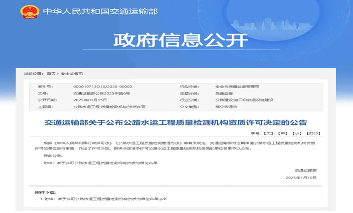 此次获批公路工程甲级质量检测资质,是国检集团在工程检测领域深耕细作、持续创新的有力证明,公司将继续践行央企担当,持续提升技术水平与服务质量,为推动我国交通建设事业高质量发展贡献更大力量。